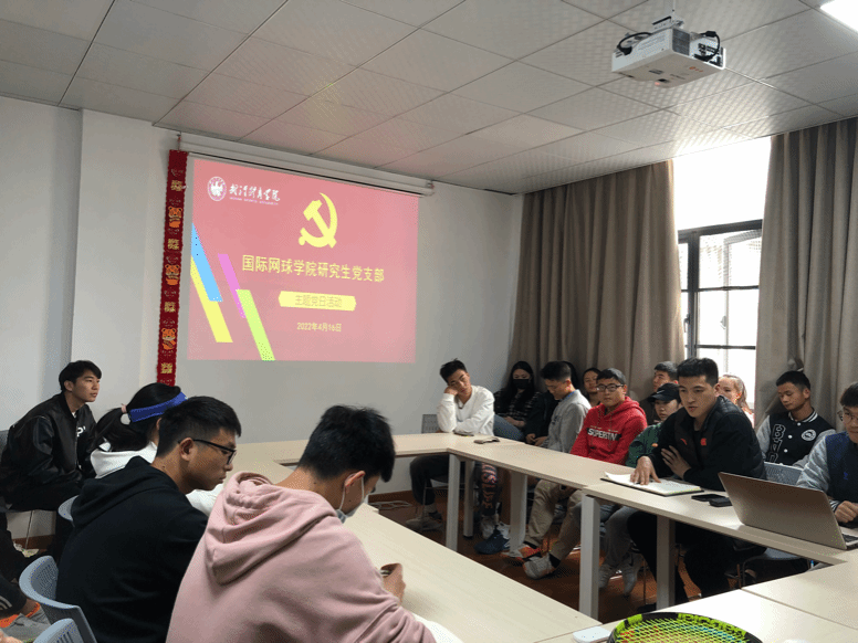 2022年4月16日下午,网球学院研究生党支部于学思楼206会议室召开4月主题党日活动。党支部书记刘长帅、全体党员和预备党员参加。