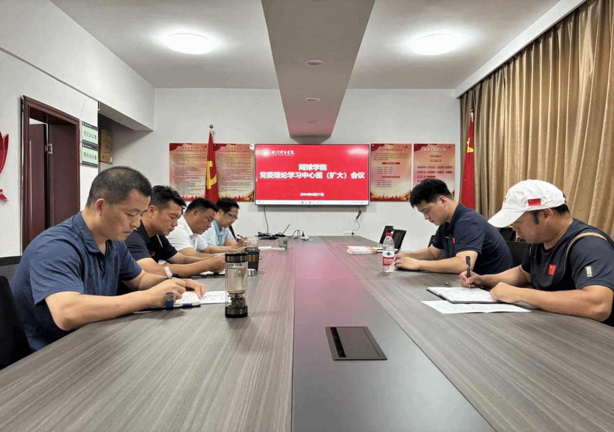 6月21日上午,网球学院在学院会议室召开6月份党委理论学习中心组(扩大)会议暨《中国共产党简史》专题学习会议。学院党委书记、院长柯勇主持会议,党委副书记、副院长雷海林、教研室主任、各支部书记及教学秘书参加学习。