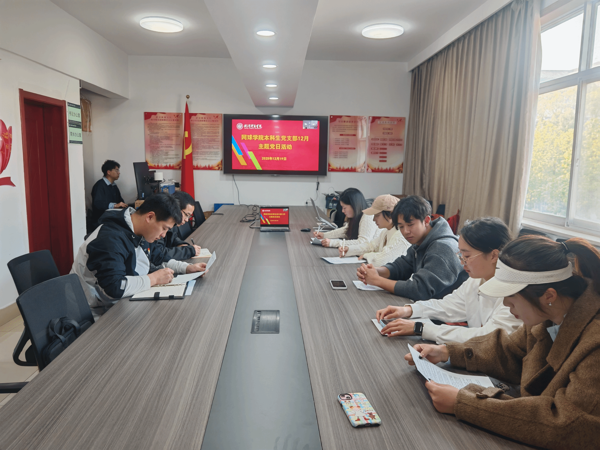 12月19日上午,网球学院本科生党支部在学院会议室召开以“学思践悟强党性,法治文明我先行”为主题的12月份主题党日活动。活动由党支部书记刘长帅主持,支部全体党员参加学习。