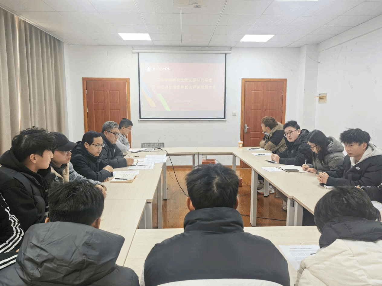 12月26日,网球学院研究生党支部召开2025年度组织生活会和民主评议党员会议。党支部书记于鹏飞主持会议,学院党委副书记、副院长沈贞伟以普通党员身份参会,全体研究生党员参加。