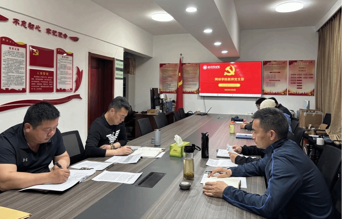 4月8日下午,网球学院教师党支部在学院304会议室召开主题为“深学细悟强党性 笃行实干建新功”的4月份主题党日活动。会议由党支部组织委员李亮主持,全体党员教师参加学习。