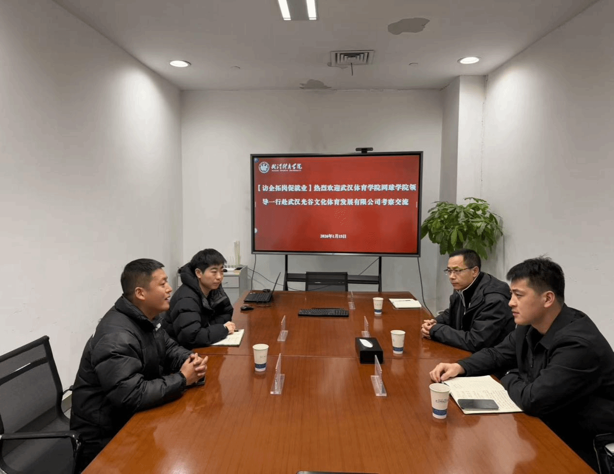 为深化校企合作、拓宽就业渠道,推动人才培养与产业需求紧密对接,2026年1月15日,网球学院党委副书记、副院长沈贞伟一行赴武汉光谷文化体育发展有限公司开展访企拓岗专项行动。