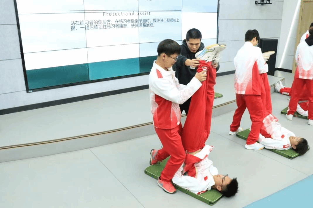 刘忠义同学以《肩肘倒立》为授课内容,坚持“分步学习、击破难点”的教学理念,在准确把握教学重难点与完整技术的基础上,将“肩肘倒立”教训内容拆分为三个部分,使学生能够深入细致的领会技术重难点,循序渐进的掌握完整技术动作,并将竞赛元素引入课堂教学,极大的激发了学生练习兴趣,既提高了学生灵活运用技术动作的能力,也提高了学生公平竞争、团结协作、勇敢顽强的精神品质,将“以赛促学、以赛促练”的理念完整融入了课堂教学。