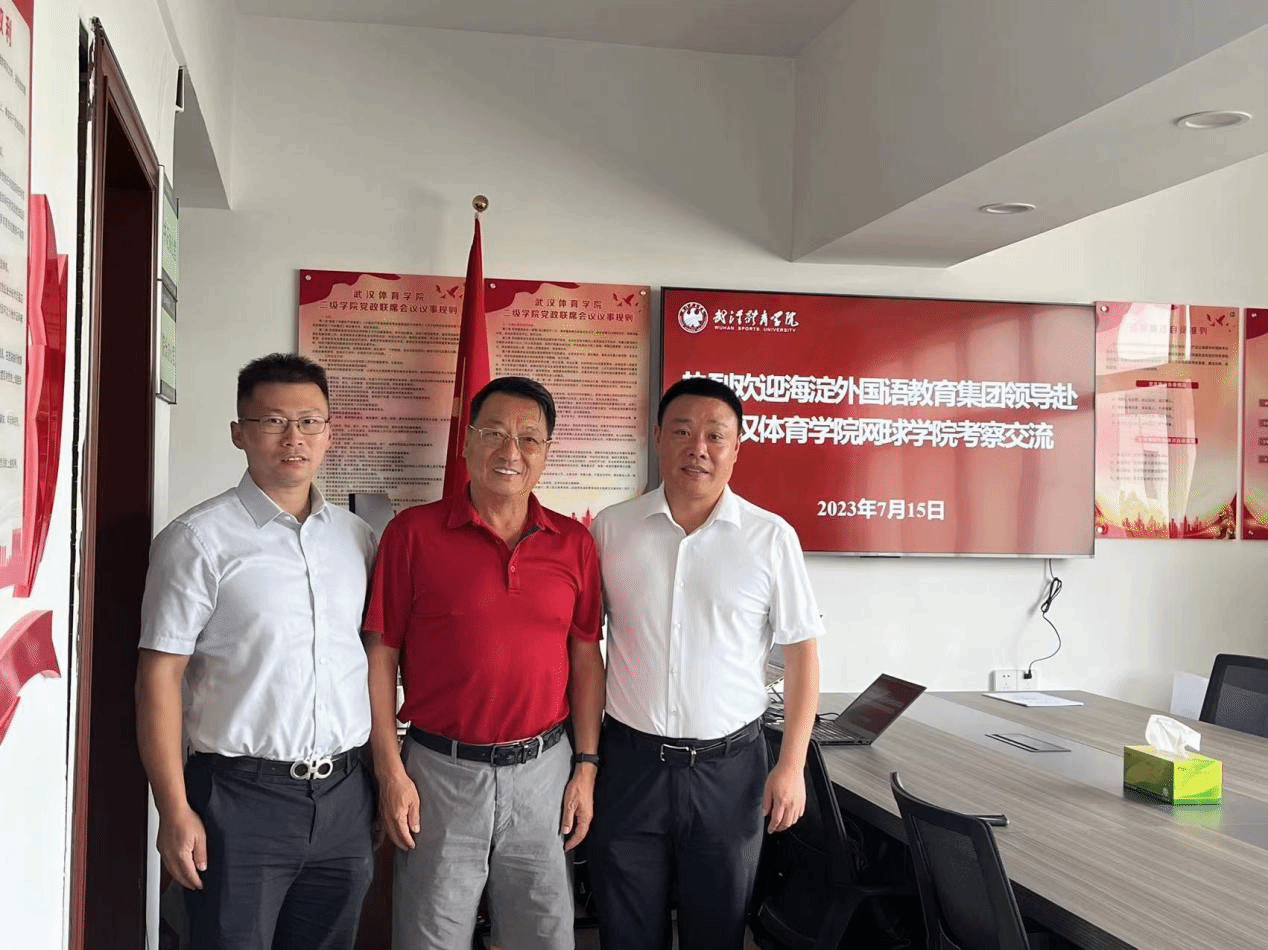 为持续推进“访企拓岗促就业”专项行动,拓宽学生就业渠道,7月15日上午,海淀外国语教育集团执行总裁、双优运动学院院长胡雄一一行赴我院考察交流,网球学院党委书记、院长柯勇、教学秘书熊飞参加座谈。