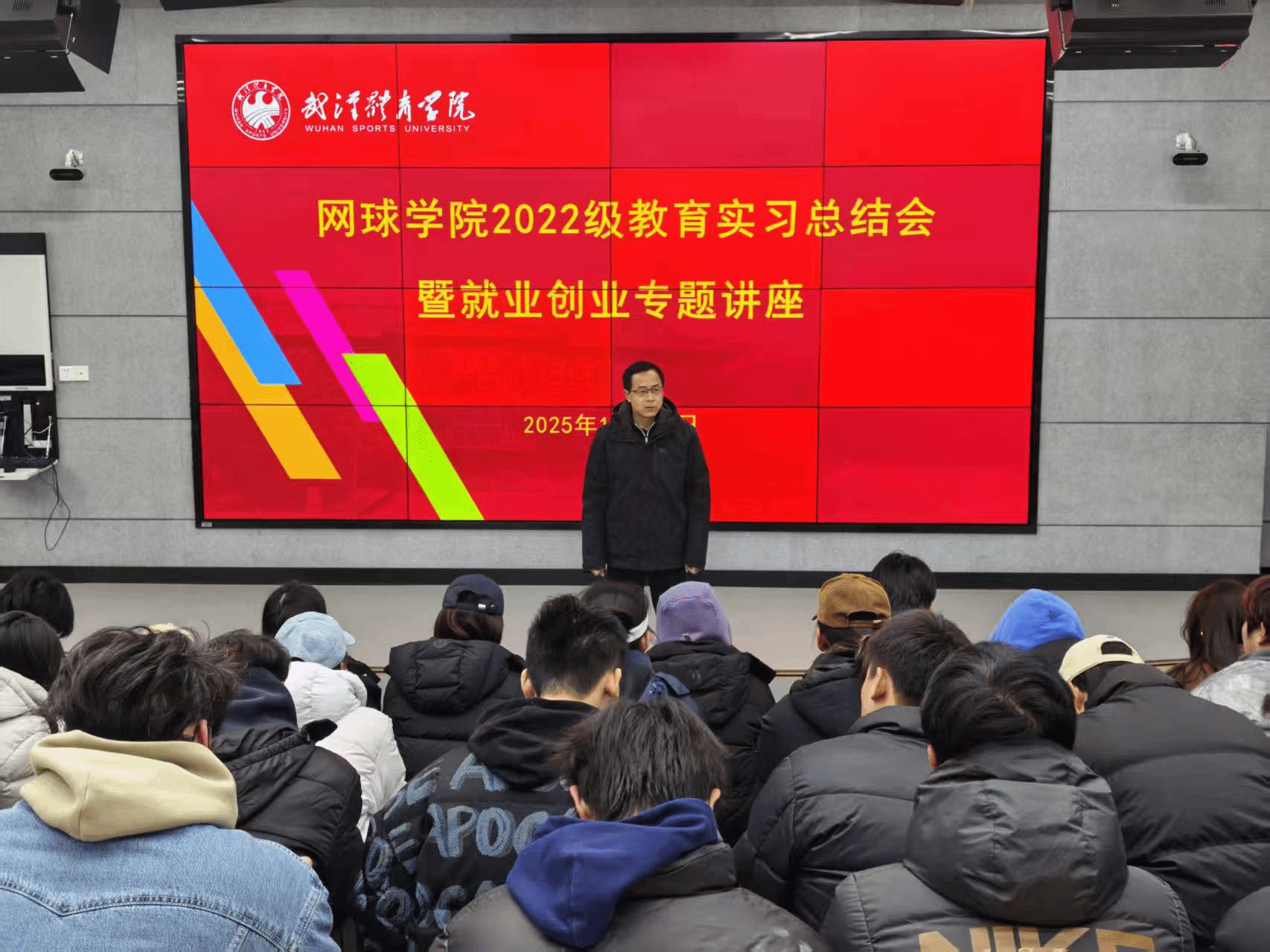 本次会议既是对实习工作的全面总结,也是对学生职业发展的系统指导。通过形势分析、政策解读与经验分享,同学们进一步明确了发展方向,增强了就业信心与行动自觉。未来,学院将继续完善“实习—就业—发展”一体化育人体系,不断深化校企合作、拓展实践平台、加强分类指导与跟踪服务,助力学生实现更高质量就业与可持续发展,努力培养更多专业扎实、能力突出、适应社会需求的高素质体育人才。