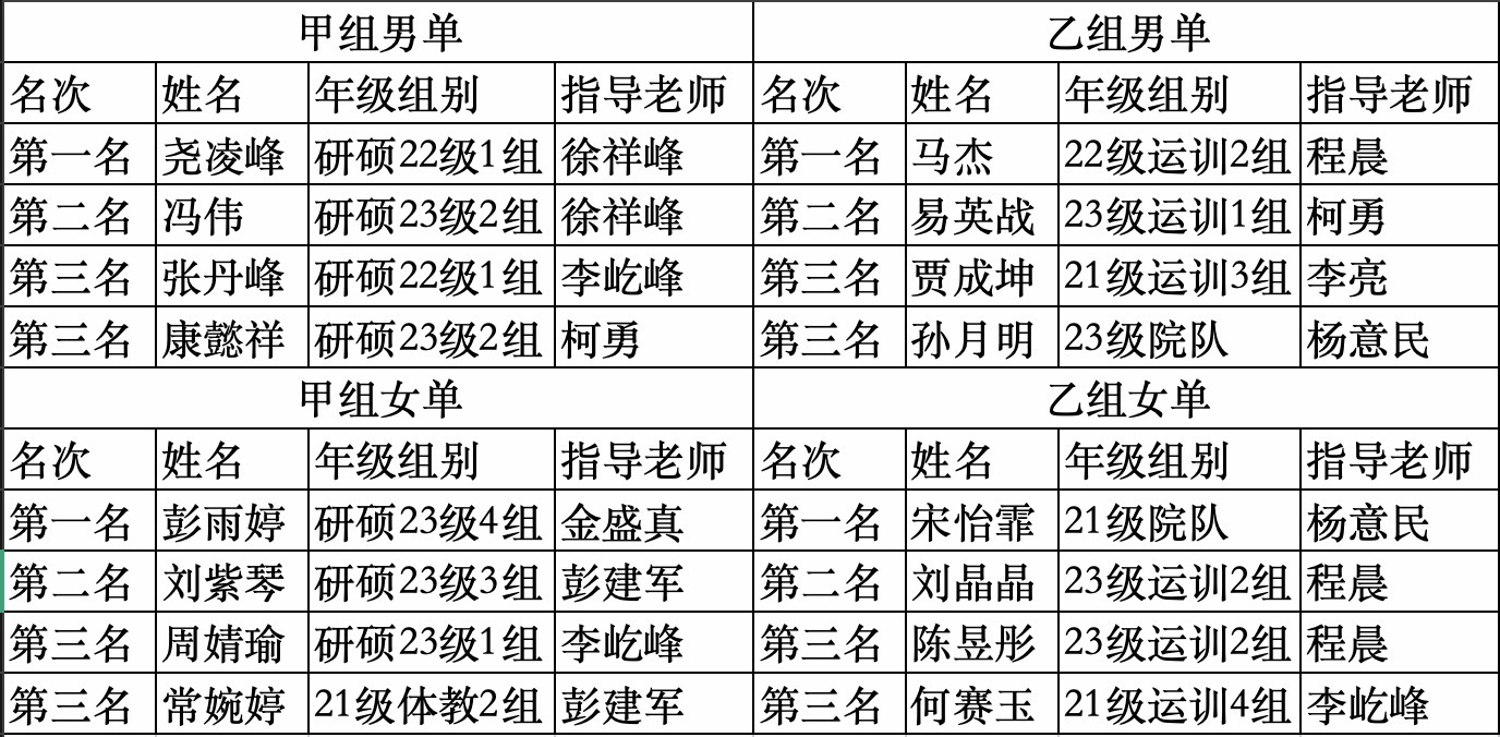 本站比赛共有358名学生运动员参与比赛、54名学生裁判员服务赛事运行,参赛选手与赛事裁判以最佳状态投入比赛。经过紧张而激烈的角逐,最终各组别的成绩如下。