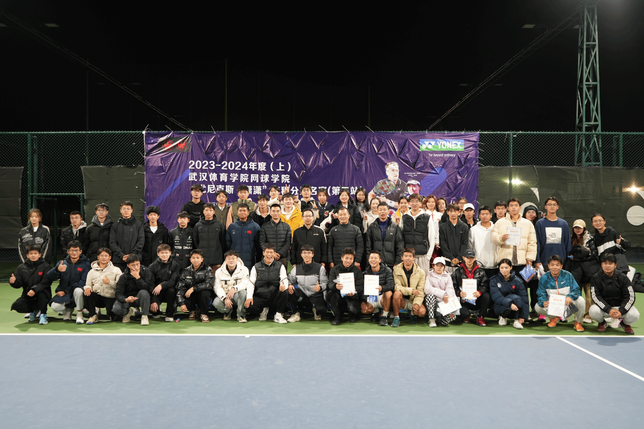 网球学院积分排名赛由“尤尼克斯”冠名赞助,秉承“集聚优势资源,优化赛事体验”治赛理念,为学生搭建了一个砥砺意志品格、磨练精湛球技的发展平台,至今已成功举办30余站。赛事的成功举办既全面提升了学生运动技能水平、裁判制裁能力与赛事组织能力,也检阅着学院专业建设、技能培养及竞赛筹备工作,助力学院补齐工作短板,实现全面发展。