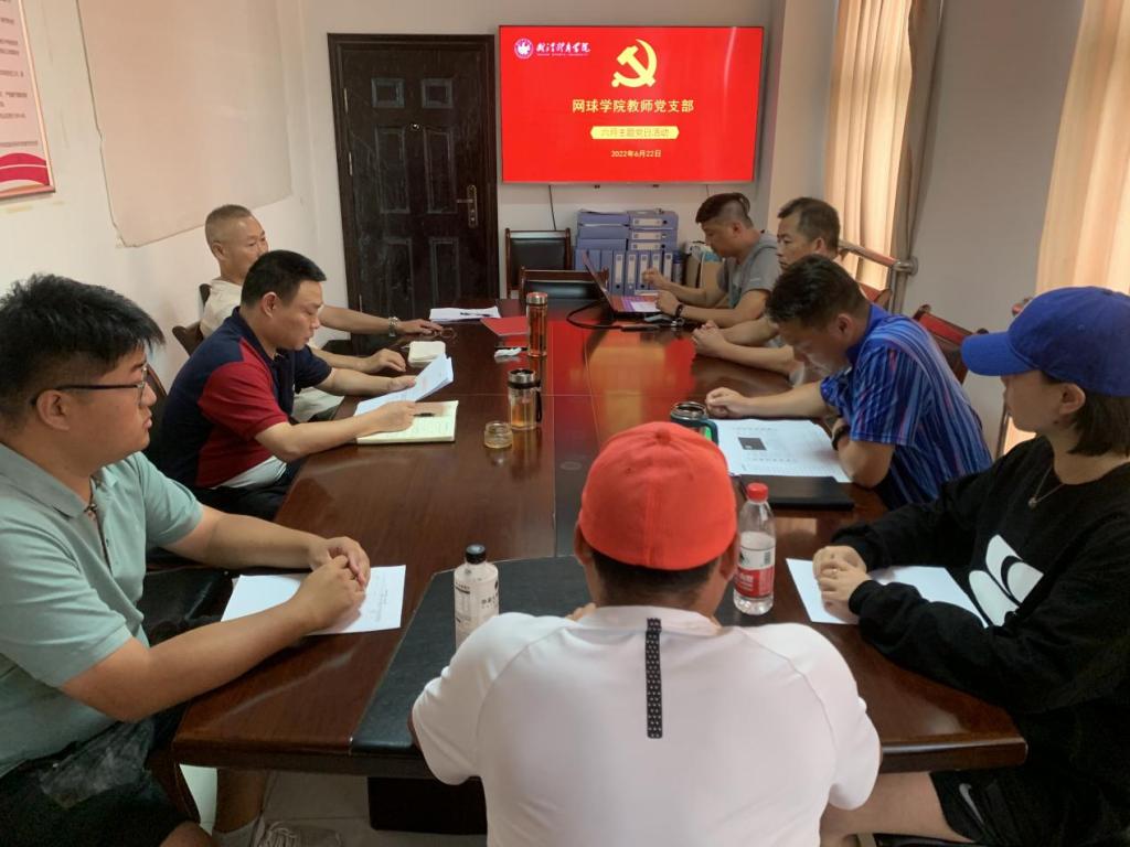 2022年6月23日,网球学院教师党支部在小球馆五楼会议室召开6月主题党日活动。支部书记李屹峰主持会议,全体支部党员参加。