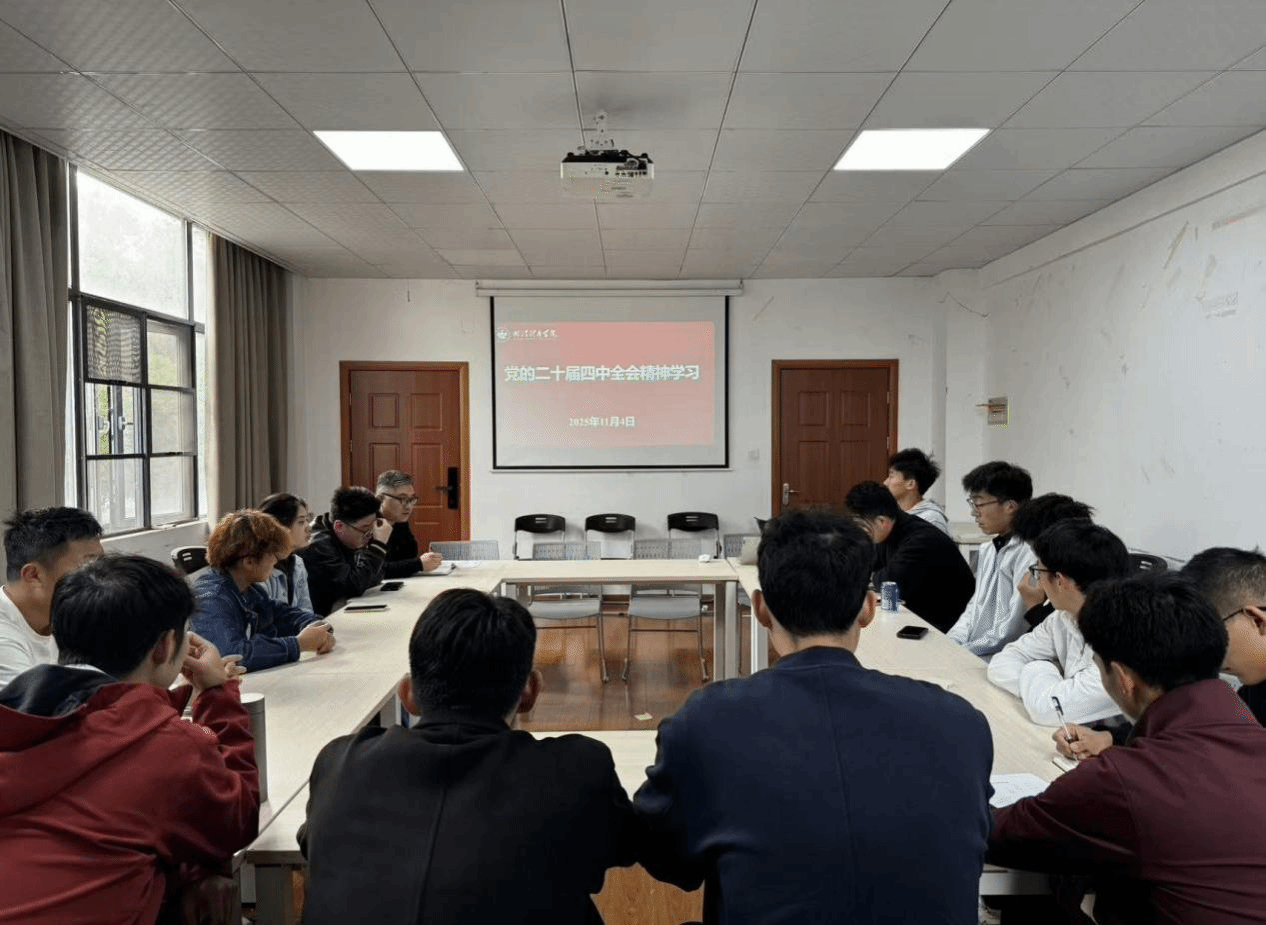 为深刻领会党的二十届四中全会精神的丰富内涵与核心要义,引导广大研究生在思想上、行动上同党中央决策部署保持高度一致,网球学院于11月4日和11月6日,分别组织研究生党支部全体党员和全体研究生,在学思楼201会议室开展党的二十届四中全会精神专题学习。会议由研究生辅导员于鹏飞主持。